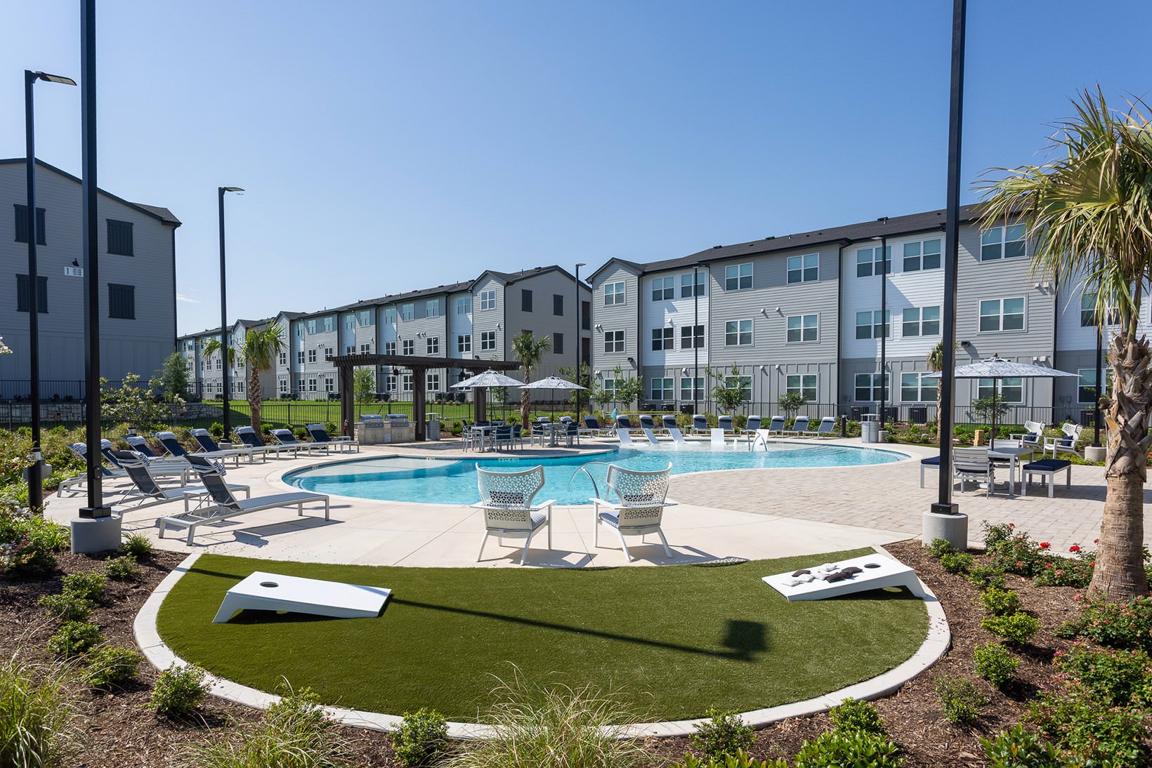 Bedroom with large windows at Prose Decker Lake new apartments in Austin